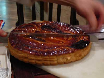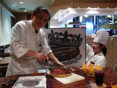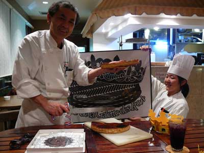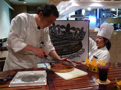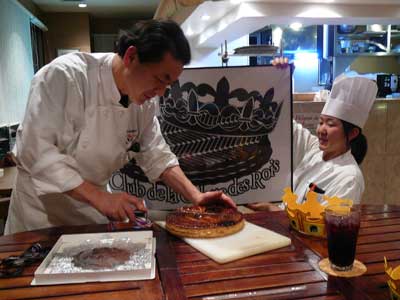 | 「それでは、ヌーヴェル・ガレット・デ・ロワ・ジャポネーズの誕生を祝って、これからクラブ・ドゥ・ラ・ガレット・デ・ロワ公認のヌーヴェル・ガレット・デ・ロワ入刀式を行ないます」 | |