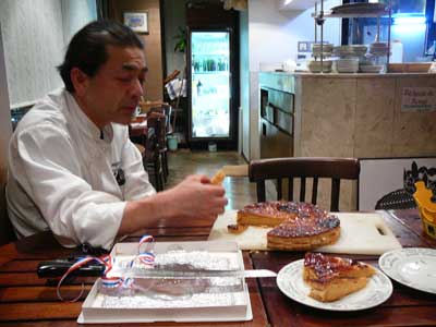 | 「ところで島田(進)シェフは?」「さっきまでいたのですが、ガレットを焼き上げてすぐにクープ・デュ・モンド国内予選の表彰式のためにフランス大使館に行っちゃいました」 | |