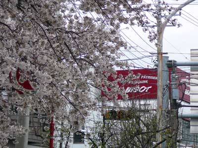 | 「最近の流行として、例えば桜のサントノーレの場合、プティ・シューのフォンダンだけでなく、中に詰めるクリームも桜色に着色して桜風味も強める傾向がありますが、パティシエ・シマの場合は島田進シェフが君臨している限り、大きな進化は望めないようです(:゚-゚)//(()トトーン」 | |