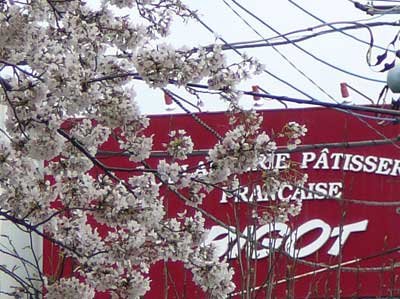 | 「あれが日本の桜ですか? パリの桜(fleurs de cerisier フルール・ドゥ・スリジェ)はもっと濃いピンクで実がなるのですが…」「日本のソメイヨシノは淡いピンクで、実はならないのです。来週にはもう散ってしまうでしょう」 | |