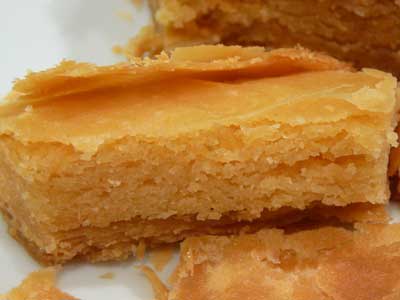 | 「ガレット・デ・ロワ・フィユテ、ガレット・デ・ロワ・セッシュ(セッシュとは袋の意味)と呼ばれているフィユタージュ生地のみのガレット・デ・ロワです。島田シェフが修業していた1970年代のパリのダロワイヨではガレット・デ・ロワ・パリジェンヌと呼ばれていたそうです」 | |
