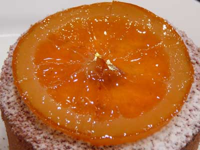 | オレンジのシロップ煮をスライスしたものが載っています。 | |