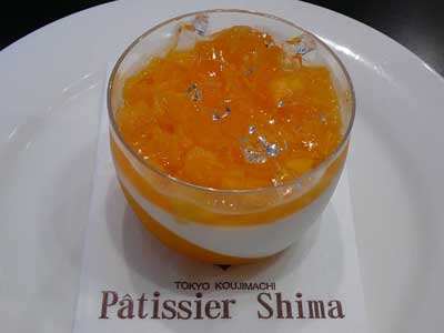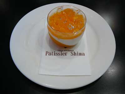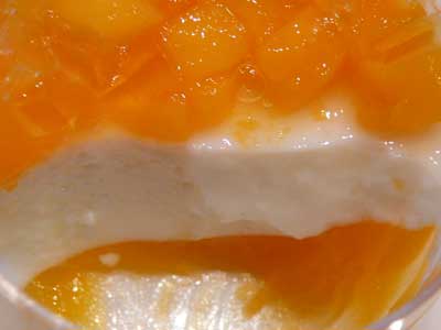 | グラスの底にはマンゴーとパッションフルーツのジュレです。最後には再びマンゴーの風味が戻ってきて、口全体に心地よい余韻を残します(^Q^) | |