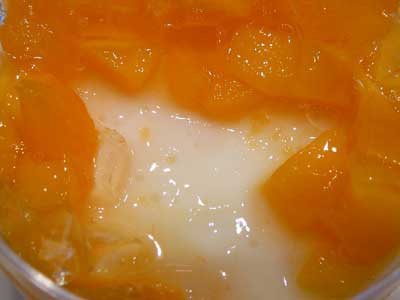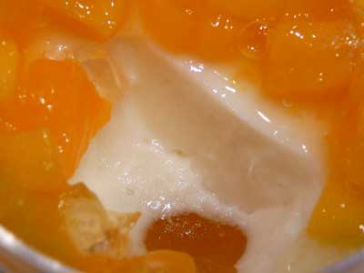 | マンゴーの実がフレッシュな味わいを出しています。 | そしてヨーグルトゼリー… |