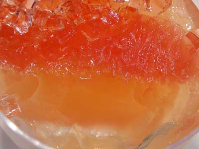 | 飴の帽子はスプーンで叩いてつぶし、シャーベットの中に落として一緒に食べるのが正式な食べ方。 | |