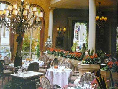 | 天井がスルスルと音も無く開き、ルイ15世様式のサロンに陽射しが燦燦と降り注いできました…開閉天井のあるレストラン「LASSERRE」の登場です。 | |