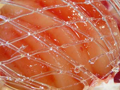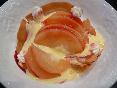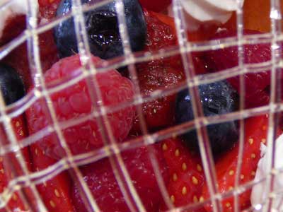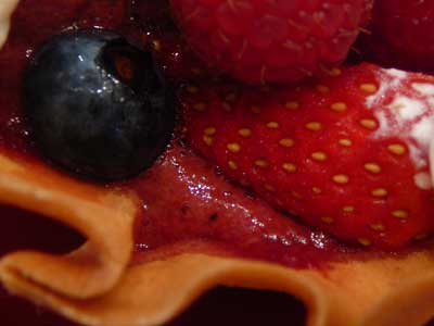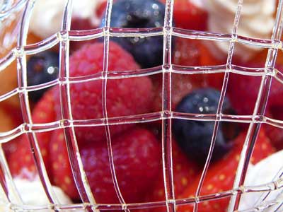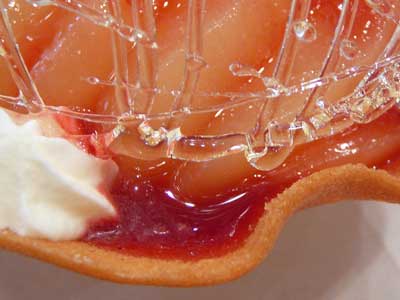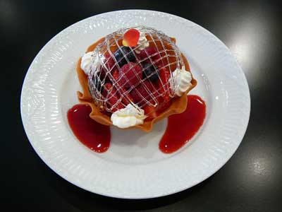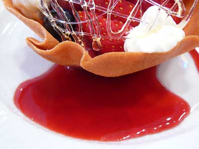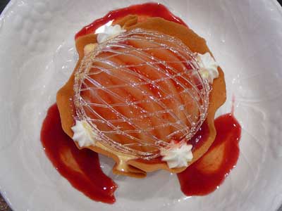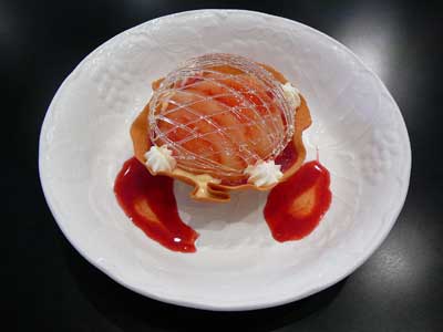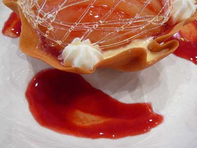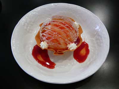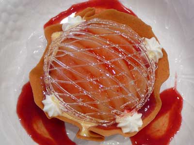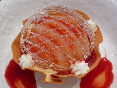 | 飴のネットをかぶせて速攻でいただきましょう…タンバルの下にフランボワーズソースを流してあります。 | |