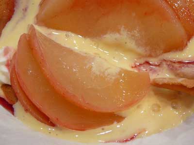 | 「これは悲惨です!(゚O゚:)\ パータ・チューリップも水分を含み過ぎて崩壊してしまいました…しかし、ソースにフランボワーズのリキュールが効いていて、溶けても美味なのです(^Q^)」 | |