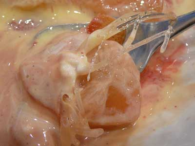 | 「おおっ!? フランボワーズのソルべが溶けていますよ…これはヤバい!(゚O゚)\」 | |