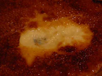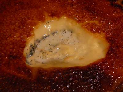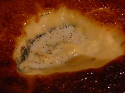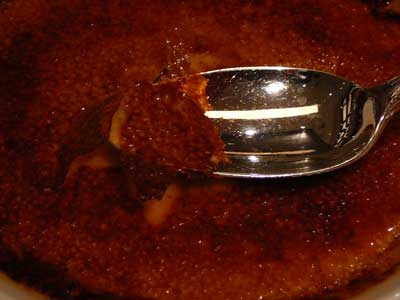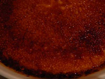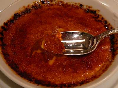 | フェルナン・ポワン氏の弟子のポール・ボキューズ氏がポ・ド・クレームの中身を平らな皿に入れて、カソナード(赤砂糖)を振りかけて表面を焦がしてクレーム・ブリュレにしたわけです。 | |
