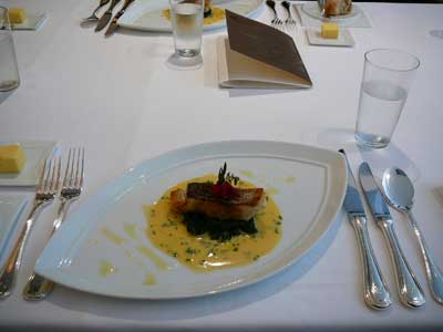 | 「ワンダフルハウス様、“スズキのロースト 香草風味のブールブランソース”でございます」 | |