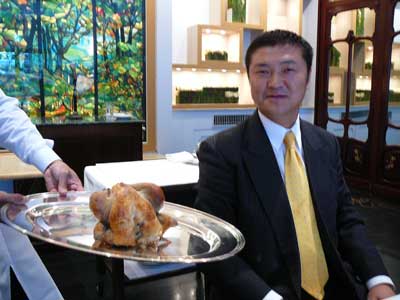 | 「今日はフランス料理界のスーパースター 田村総支配人の伊達鶏のデクパージュが見られるのです!」 | |