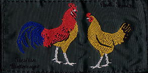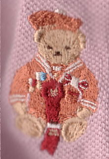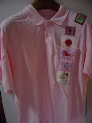 | 上から星条旗、タキシードおじさん、野球、アロハ、ラケット、旗の刺繍ワッペンが付いたポロシャツ。 | セーラーぐまのワンポイントポロシャツ。 | |
