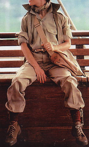 アフリカを舞台にした映画「愛と哀しみの果て(原題「アウト・オブ・アフリカ」)のロバート・レッドフォードとメリル・ストリープの洒落たサファリ・ファションを思わせるアイテムが勢揃い。サファリジャケット、乗馬パンツ、ショートパンツなどが初お目見え。