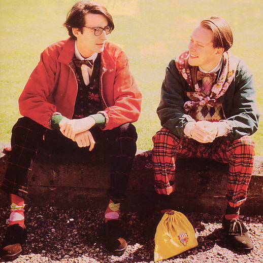 | 黒・ベージュ・こげ茶の基本カラーに赤とグリーンをプラス、全5色揃ったシープスウェードのスイングトップ。お勧めは赤とグリーン。デザインがベーシックなだけに、色のコーディネートが楽しめるからです。メンズクラブ1987年10月号に載ったカールヘルムの広告「英国の伝統に学ぶ」(スコットランドロケ)で金子さんは赤とグリーンを選んでいます。金子さんは赤を買って、京都で着ていました。スウィングトップ¥120000、セーター・右¥39000、セーター・左¥35000、シャツ¥18500、パンツ¥20000、チョウタイ¥5800、スカーフ¥8000、ソックス¥2500、シューズ¥31000、布袋¥3500(カールヘルム1987年秋冬物) |