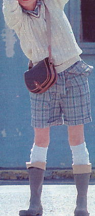 | セーター¥18800(プレッピー)シャツ¥8900、パンツ¥6800(ピンクハウス)帽子¥2400、カバン¥7800(OUT POST)長靴¥12000(スポーツトレイン)商品・価格は全て1980年当時のものです。 |