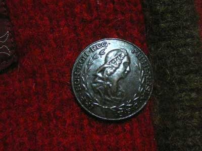 | 英国の軍隊の本格的なエンブレムと、おなじみタグ風ワッペンで可愛さ100倍。 | 釦の御婦人は、ハプスブルク家きっての才女であり、オーストリアの歴史でたった1人の女帝であり、「ベルサイユのばら」にも出てくる、マリー・アントワネット(ドイツ語ではマリア・アントーニア)の母上、マリア・テレジアでございます。 |