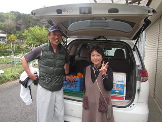 長野(長野市・安曇野)に居を構える勤め時代の後輩S君夫婦がやってきた。ここ数年ミカンの時季に家族旅行で訪れていた。今回は調整がつかなかった模様で、夫婦のみの旅行になったらしい。27日14時頃に行くとメールがあったのだが、実は前日26日から静岡入りしていて、色々楽しまれた様だ。長野から3時間半程度で来るらしい。ミカン目的で毎回帰路に立ち寄るのだが、今回はウリのはるみの味が不安定で苦慮していたが、秘蔵の寿太郎を中心に用意し、希望に応じて不知火とはるみを適量持ち帰って貰った。それでも都合120kgになった。奥様はやや酸味が残る不知火がお好きの様で、予措中の不知火のお気に入りをコンテナから拾い出していた。S君はやはりはるみにこだわりがある様で。こちらは良さそうなヤツをモロブタから取り出して用意した。S君によれば、長野じゃ「ミカンは酸っぱいモノ」と言う認識があるらしく、多少の酸味は気にしないらしい。今時驚きの言葉だった。写真は、車へミカンを積み込み終わったご夫婦。オンマウスは一旦帰路に就こうとしたら、話し好きのカミサンがミツバチのケアから戻って来て歓談が始まった様子。昨年は諏訪や白樺湖方面を40数年ぶりに尋ねたが、今年は長野市や白馬、そして安曇野方面へ足を延ばしてみたい。 |