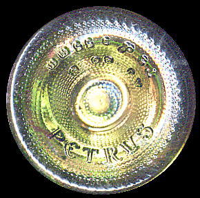 (左) 瓶底にPETRUSというロゴが入っています。これは1986年から1995年まで使われていました。 (右) 1996年からはラベルの上にPETRUSのロゴが入ったボトルが使用されています。 |