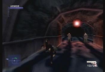 先に進むとグレゴロフがいる。 正確にヘッドショットを狙ってくるので、 前転しながら右側のスペースへ。 |